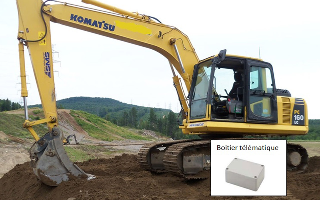 L’approche est ici différente d’un système de géolocalisation classique. La balise embarquée sur l’engin est très facile à installer. Elle est simplement branchée sur la batterie et surveille automatiquement la mise en marche du moteur. Un accéléromètre intégré détecte le travail réel de l’engin. Il est ainsi possible de connaitre journellement et de façon détaillée si nécessaire le temps moteur tournant au ralenti et le temps moteur tournant au travail.
