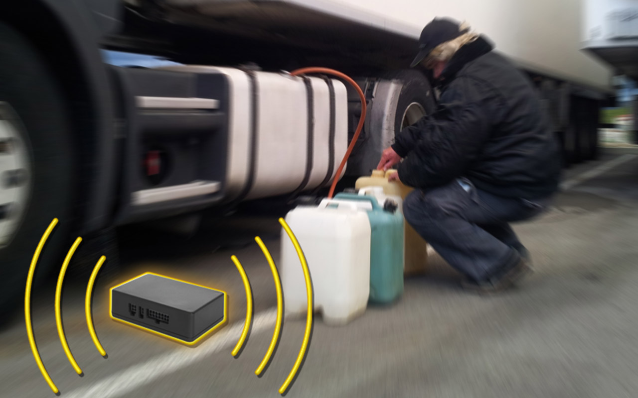 Il détecte les descentes anormales de carburant quand le contact est coupé. Si le niveau de carburant baisse (siphonnage) d’un pourcentage préréglé, l’alarme se déclenche.